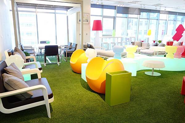 並以草皮達人的人工草皮再加以延伸區塊到另一個房間裡做連結,
